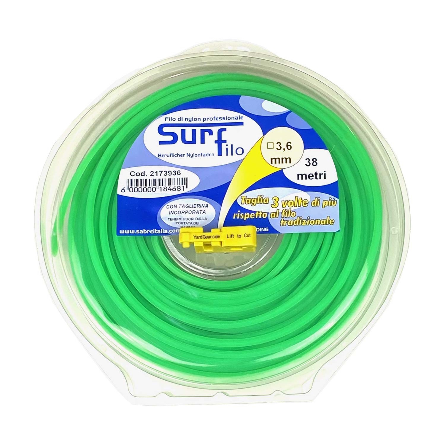 MATASSINA FILO SURF QUADRO SMERALDO mm. 3,6 x m. 38 conf. 24 pz. (bivalva con taglierina)