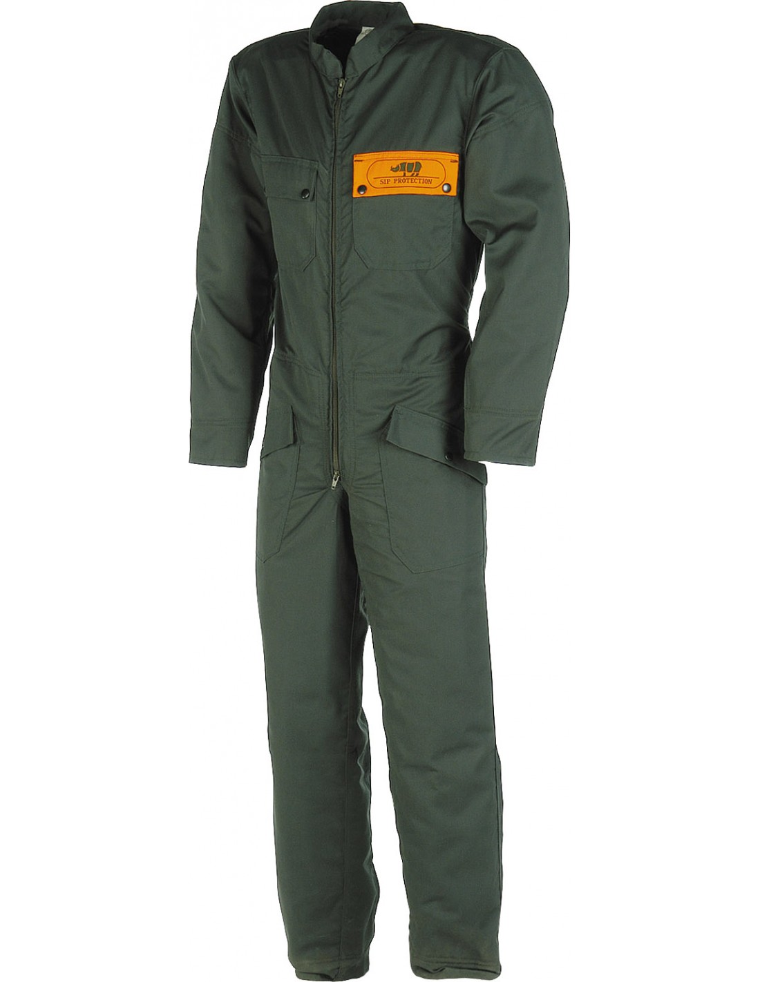 Costruzione esterna 65% poliestere, 35% cotone, 245 gr/m2, solo 6 strati di tessuto, protezione interna in kevlar miscelato poliammide HT, ventilazione posteriore, due tasche al petto e due alla vita, doppia tasca posteriore applicata per lima, catena o strumenti, cerniera anteriore indivisibile, regolazione polsini, colore verde/arancio.