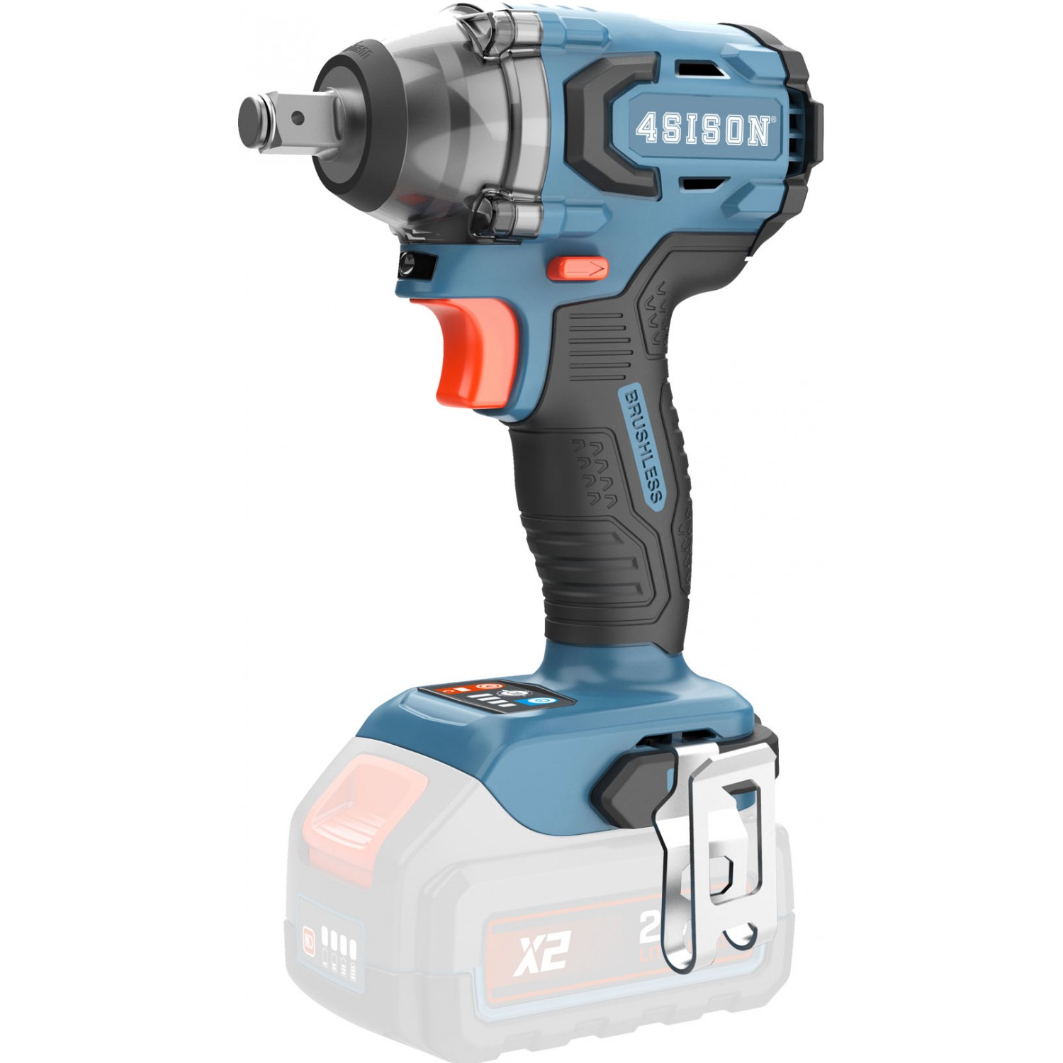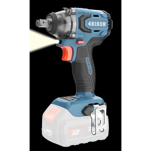 Motore brushless V. 18, velocita' a vuoto rpm 0-1000, 0-1800, 0-2600 0-3200, coppia di serraggio Nm. 330, impatti al minuto ipm 0-1800, 0-2600, 0-3400, 0-4000, attacco quadro da mm.- 12,7 (1/2"), capacita' di serraggio vitri standard da M10 a M20, viti ad alta resistenza da M10 a M16, autonomia a vuoto 65' con batteria 5Ah, al lavoro 220 serraggi e sbloccaggi viti M14 con batteria 5Ah, luce LED illuminazione area di lavoro, clip da cintura, micro texture personalizzata per presa e comfort ottimali, dimensioni mm. 144x77x198h, peso senza batteria Kg. 1,2