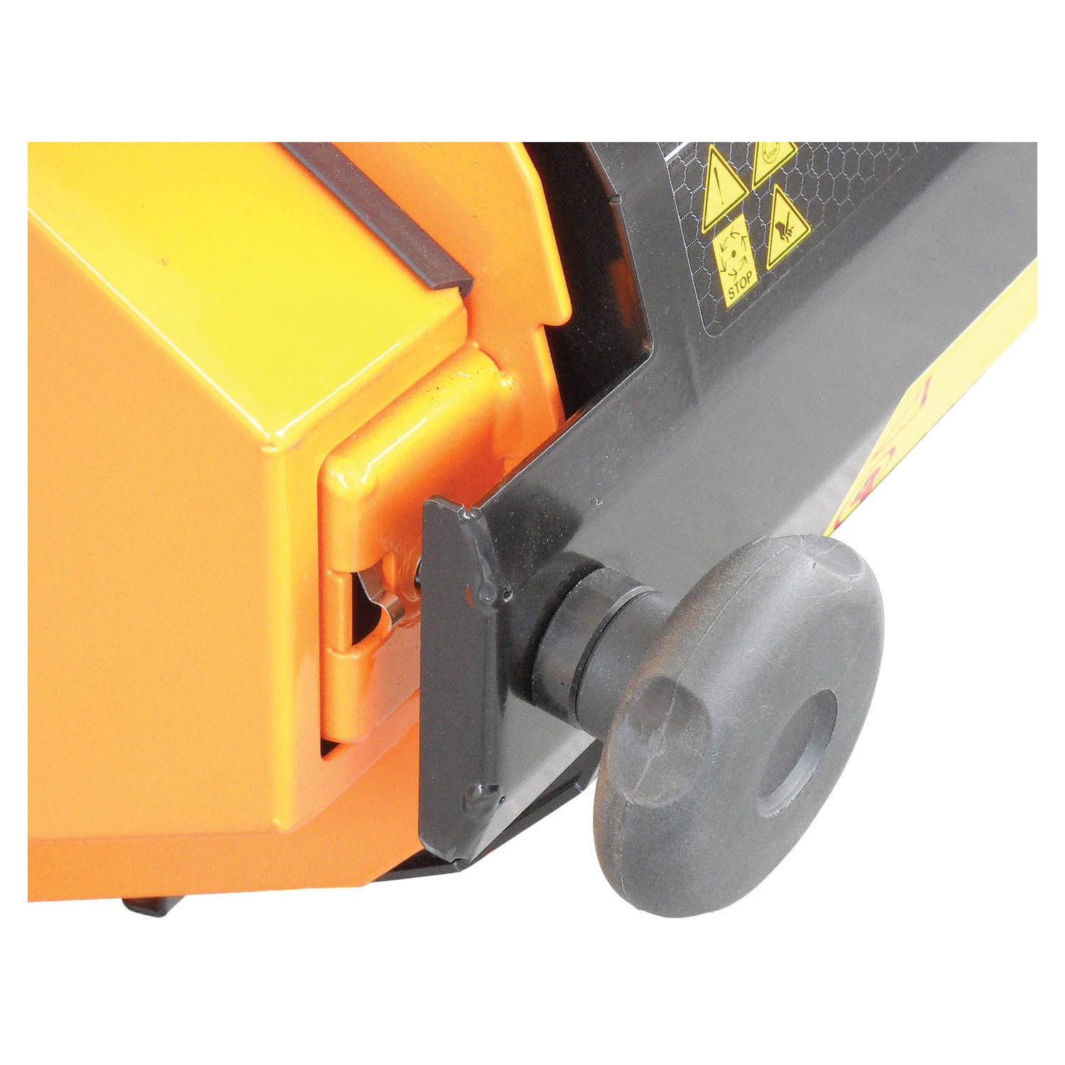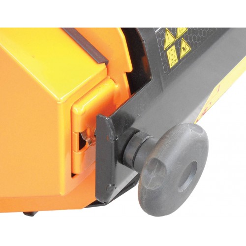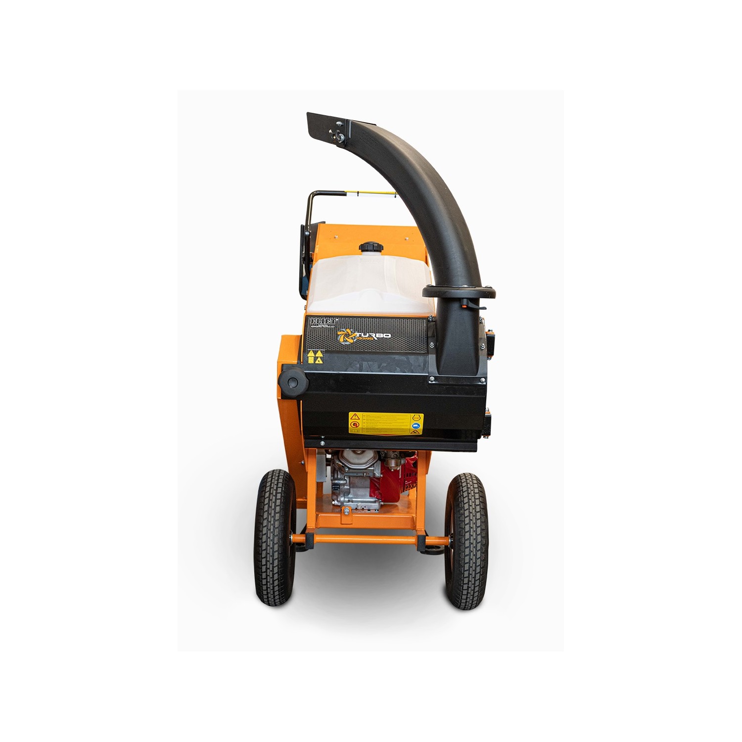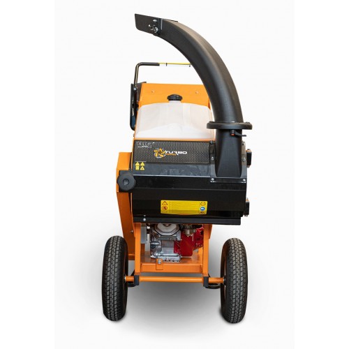 Ø massimo macinabile mm. 55, produzione m3/h. 0,9, 50.000 tagli al minuto, larghezza taglio mm. 240, rotore a 20 lame HS, trasmissione con cinghia a V, bocca mm. 245x250 alta da terra mm. 1030, turbina soffiante Ø mm. 320, tubo di mandata indirizzabile a 210°, altezza di scarico cippato mm. 1360,