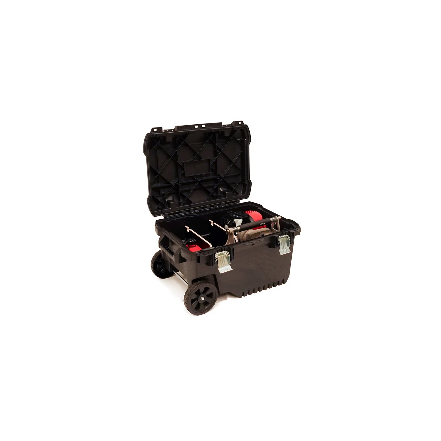Fornito completo di valigetta in plastica rigida con ruote, tanica benzina da 1 litro, un paio di guanti,