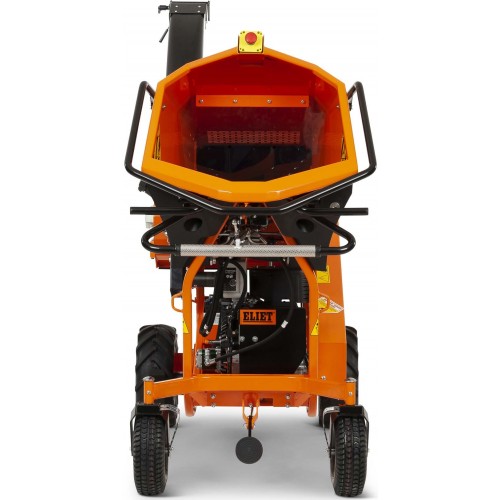 Ø massimo macinabile mm. 100, produzione m3/h. 4, 48.000 tagli al minuto, larghezza taglio mm. 400, rotore a 24 lame HSS, trasmissione al rotore con doppia cinghia a V a tensione costante, alimentatore idraulico a rullo Ø mm. 150 velocita' avanzamento 20 m./min. comandato da pompa idraulica, dispositivo antistress elettronico ABM, turbina soffiante Ø mm. 325, tubo di mandata Ø mm. 125 indirizzabile a 280°, altezza di scarico cippato mm. 1800, bocca mm. 600x580 alta da terra mm. 1000, trazione tramite un motore idraulico per ciascuna ruota anteriore, velocita' avanti e retro Km/h da 0 a 3, avviamento elettrico, contaore, contagiri, ruote ant. tractor 16x6.50-8, ruote post. 300x4.00-4, serbatoio carburante l. 12, telaio in acciaio da mm. 3, dimensioni mm. 1900x860x1670h, rumorosita' dB(LwA) 116, peso Kg. 361.