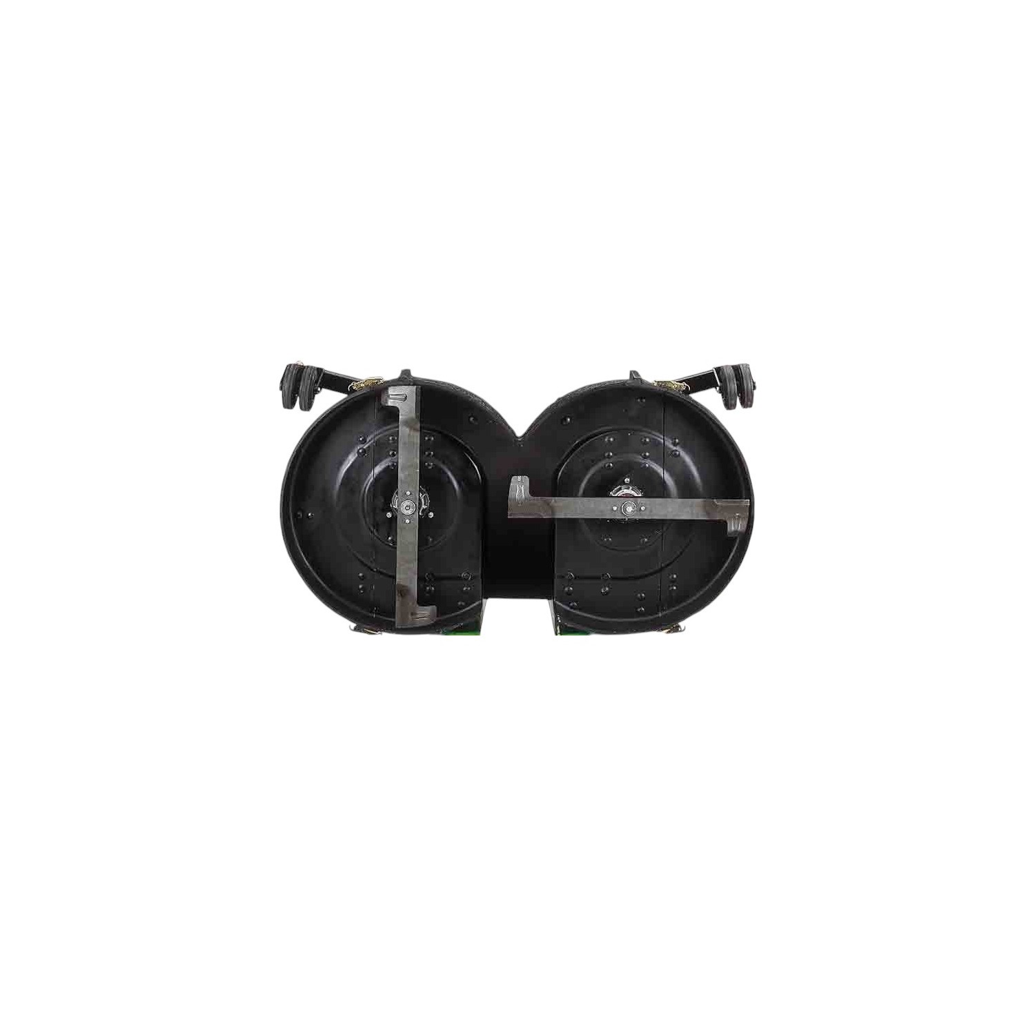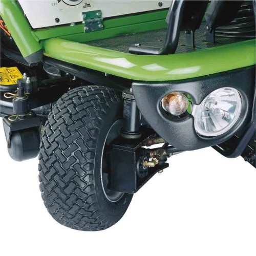 Motore LOMBARDINI FOCS Diesel tre cilindri cc. 1028, Kw. 17, Kgm. 6,8, raffreddamento a liquido,trasmissione idraulica posteriore, un motore idraulico su ruote posteriori senza assale, velocita' Km/h da 0 a 16 avanti e retro, telaio tubolare acciaio, servosterzo, freni idrostatico e a disco per parcheggio, piatto taglio sospeso a scarico centrale, paratie esterne fisse, sollevamento e svuotamento cesto idraulico, 4 ruote antiscalp, due lame controrotant, sovrapposizionel taglio mm. 60, innesto lame elettromagnetico con freno arresto rapido, trasmissione alle lame a cinghia e doppia coppia conica in bagno d'olio, protezione lame con viti a rottura calibrata, regolazione altezza taglio elettrica da mm. 44 a 140, cesto raccolta l. 600 con telaio acciaio tubolare e tela anti UV scaricabile idraulicamente a m. 1,80, sistema di sicurezza attivo su sedile e cesto, rumorosita' dB(LwA) 105 e 90 al posto guida, vibrazioni volante m/s2 0,82 e sedile m/s2 0,104, pneumatici ant. 16x7,5 e post. 23x10