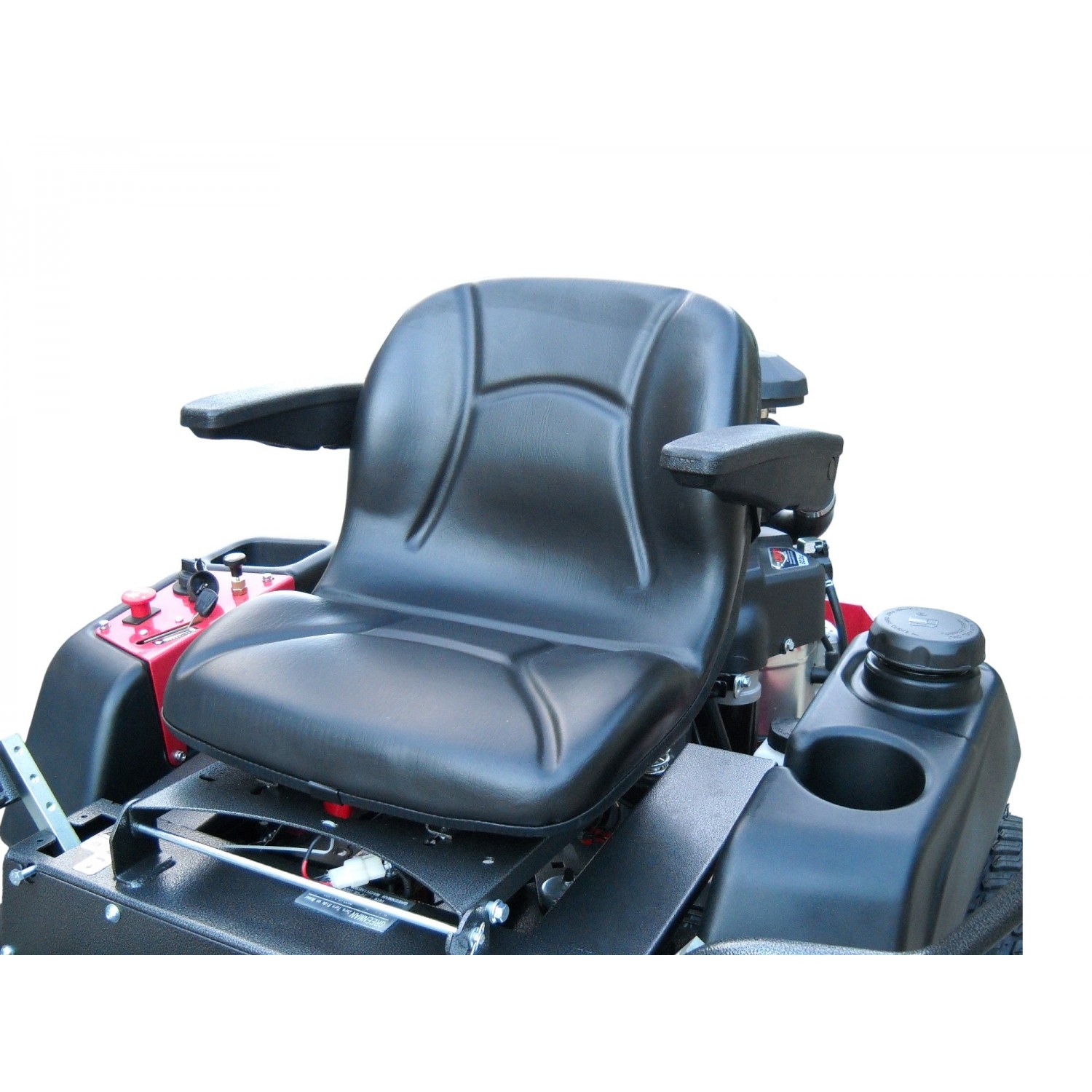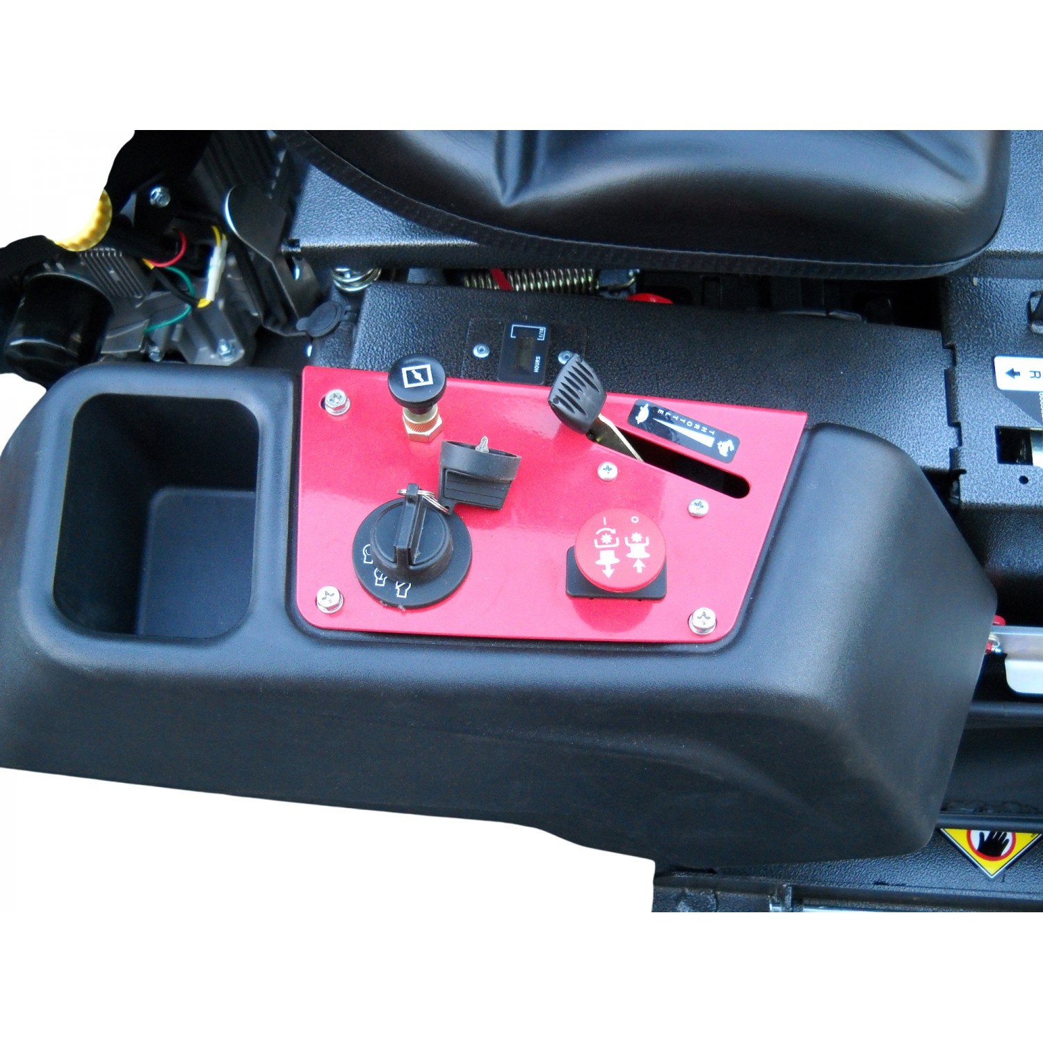 Motore LONCIN LC2P82F bicilindrico OHV, cc. 802, potenza Kw. 19, coppia Nm. 55, telaio in tubolare d'acciaio da mm. 40x40x3, forcelle ant. in acciaio da mm. 10, trasmissione idrostatica con due gruppi integrati motore-pompa Hydrogear ZT2200 stagni, leve di sterzo/avanzamento dotate di ammortizzatori a gas per ritorno controllato, freno di servizio idrostatico, freno di parcheggio meccanico azionato all'apertura delle leve di sterzo, frizione lame elettromagnetica Ogura, trasmissione lame con cinghia a V, piatto In acciaio da mm. 3 con piastre da mm. 3 per rinforzo mozzi lama, rinforzo perimetrale in acciaio da mm. 25x5, altezza di taglio regolabile da mm. 25 a mm. 101, sollevamento piatto a pedale, pneumatici posteriori 20x10.0-8 e anteriori 11x6.0-5, velocita' avanti da Km/h 0 a 12 e retro da 0 a 9, produzione mq/h 8.200, contaore, serbatoio l. 13, sedile con braccioli, vibrazioni mano/corpo m/s2 2,5/2,5, rumorosita' dB(LwA) 98