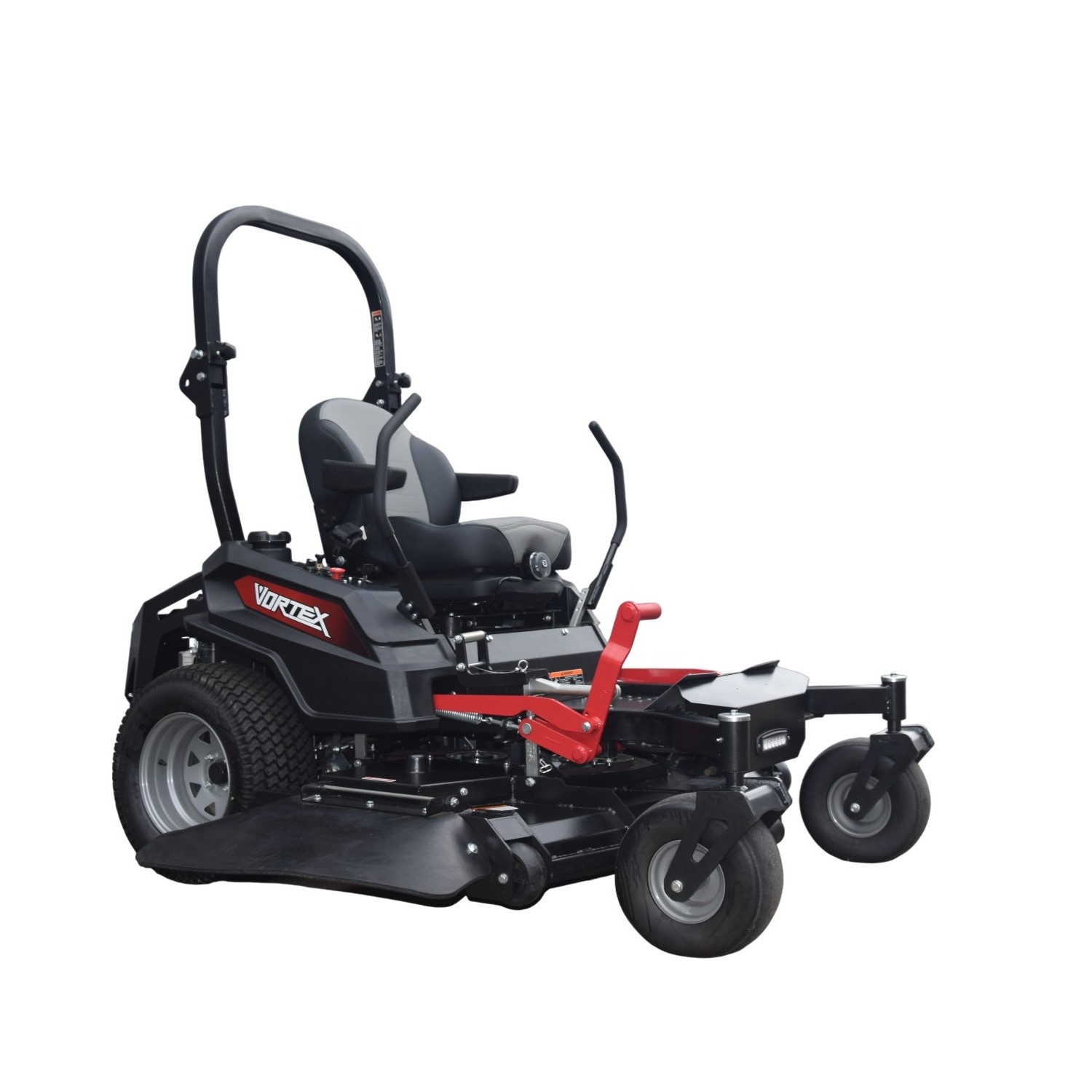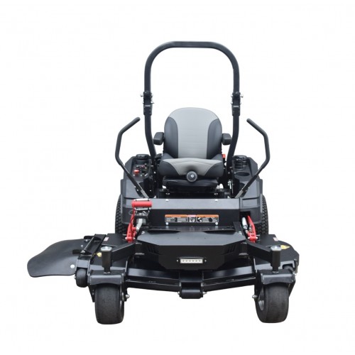 Motore LONCIN LC2P82F bicilindrico OHV raffreddato ad aria, cc. 802, potenza Kw. 19, coppia Nm. 55,telaio in tubolare d'acciaio da mm. 70x50x4, forcelle ant. in acciaio da mm. 10, trasmissione idrostatica con due gruppi integrati motore-pompa Hydrogear ZT3800 con filtri sostituibili, leve di guida con ammortizzatori a gas per ritorno controllato, freno servizio idrostatico, freno parcheggio meccanico azionato a leva, frizione lame elettromagnetica Ogura, trasmissione lame con cinghia a V, piatto sospeso in acciaio da mm. 4 con piastre da mm. 5 per rinforzo mozzi lama, rinforzo perimetrale da mm. 10x25 frontale e 8x32 laterale, altezza taglio regolabile a passi di mm. 6 da mm. 25 a mm. 127, sollevamento piatto a pedale, pneumatici post. 23x10.50-120 e ant. 13x6.5-6, velocita' avanti da Km/h 0 a 16 e retro da 0 a 9, produzione mq/h 10.000, rollbar pieghevole, contaore, serbatoi da l. 45, sedile ammortizzato e braccioli, vibrazioni mano/corpo m/s2 2,5/2,5, rumorosita' dB(LwA) 103
