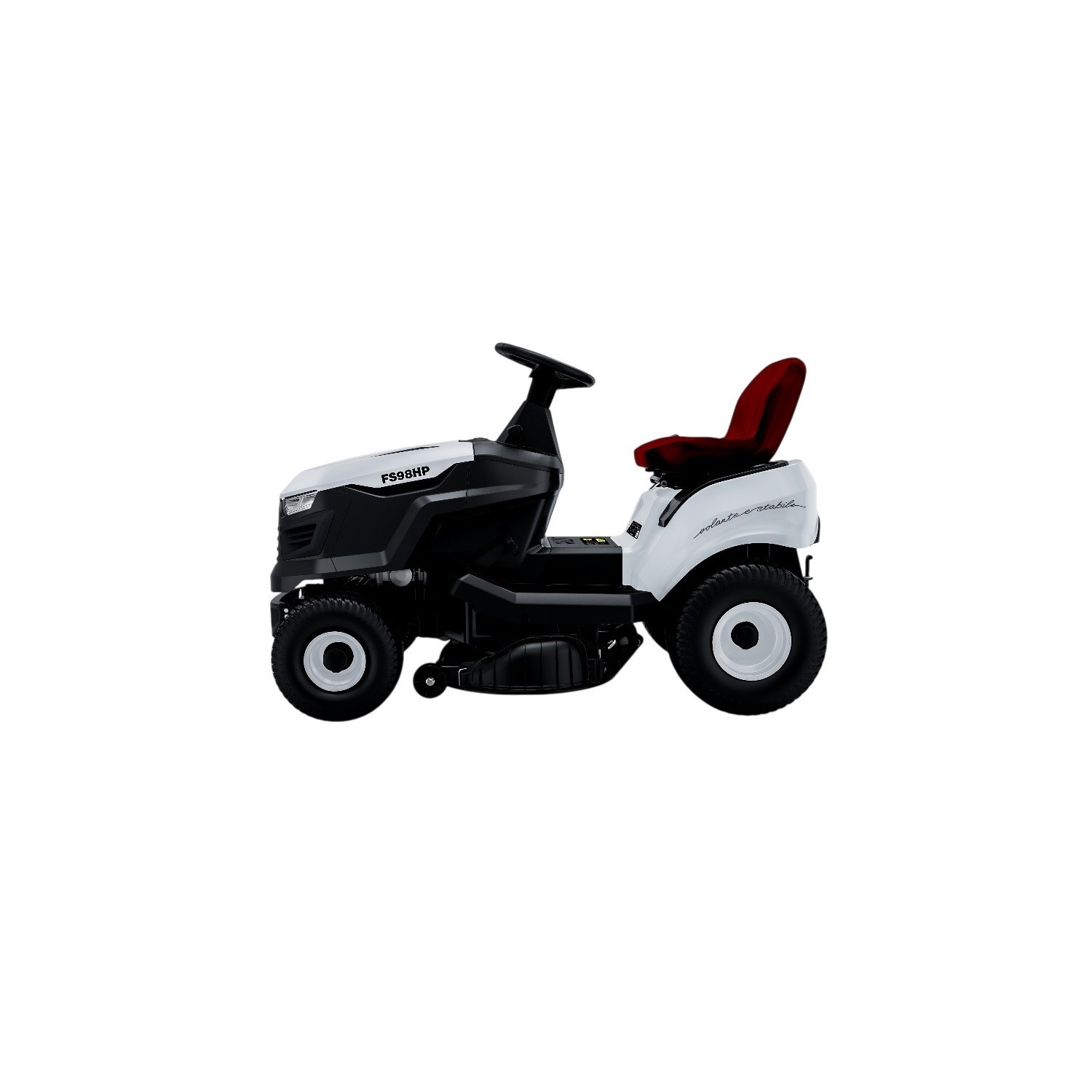 telaio in acciaio vernicIato a polveri, trasmissione Idrostatica Hydrogear T2, freno di parcheggio meccanico,