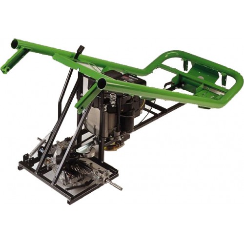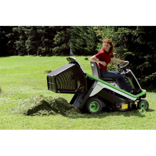 Motore BRIGGS & STRATTON Intek monocilindrico cc. 502, Kw. 10,7, Nm. 29, raffreddamento ad aria, trasmissione idrostatica posteriore, velocita' Km/h da 0 a 9 avanti e da 0 a 8 retro, telaio tubolare in acciaio saldato, freni idrostatico e a disco per parcheggio sulle ruote posteriori, piatto di taglio sospeso a scarico posteriore con finestra per ispezione e scarico laterale, un rullo antiscalp, una lama rotante in senso orario, innesto lama elettromagnetico con freno per arresto rapido allo stacco, trasmissione da motore a lama tramite cinghia trapezoidale a tensione costante, sicurezza lama con viti a rottura calibrata, regolazione altezza di taglio manuale su 5 posizioni da mm. 44 a 102 cesto di raccolta posteriore da l. 240 in acciaio tubolare e tela anti UV scaricabile manualmente a terra e con avvisatore acustico di riempimento ed assistenza idraulica, sistema sicurezza attivo su sedile e cesto di raccolta, sedile regolabile, rumorosita' dB(LwA) 86, pneumatici ant. 10x6,5-8