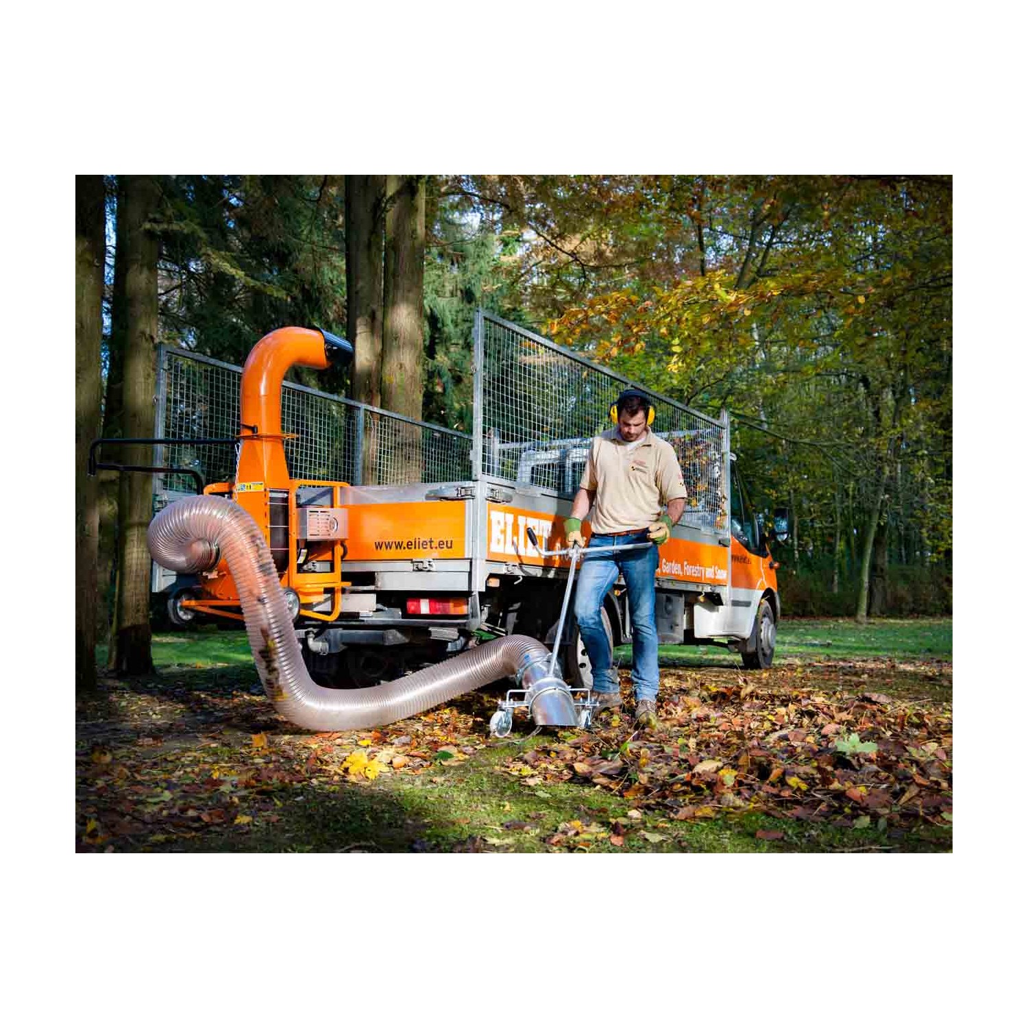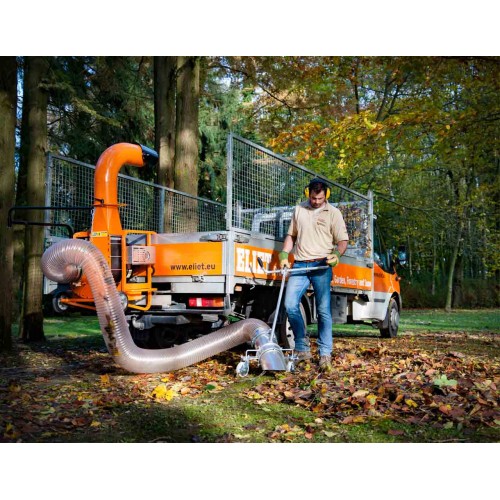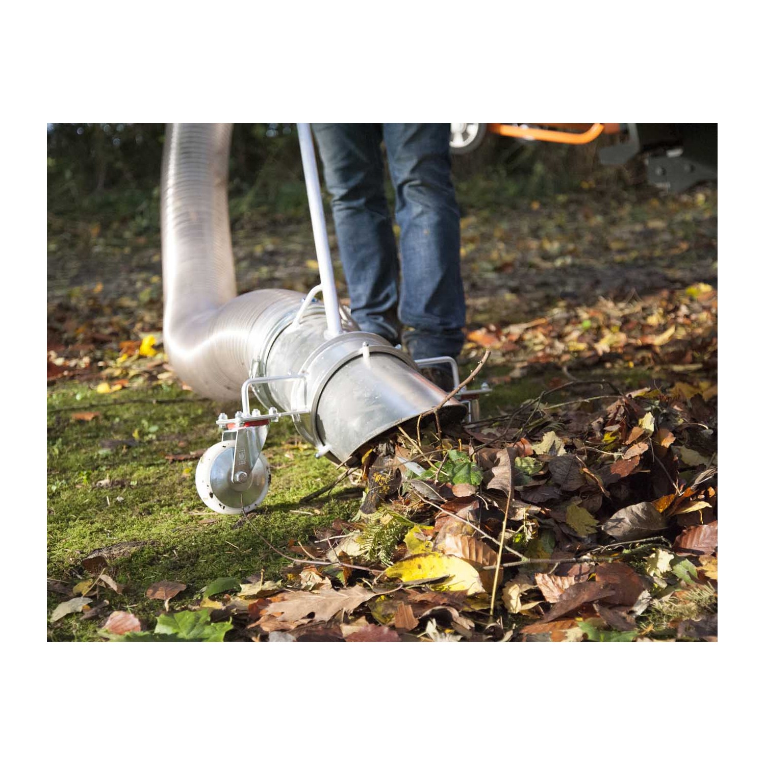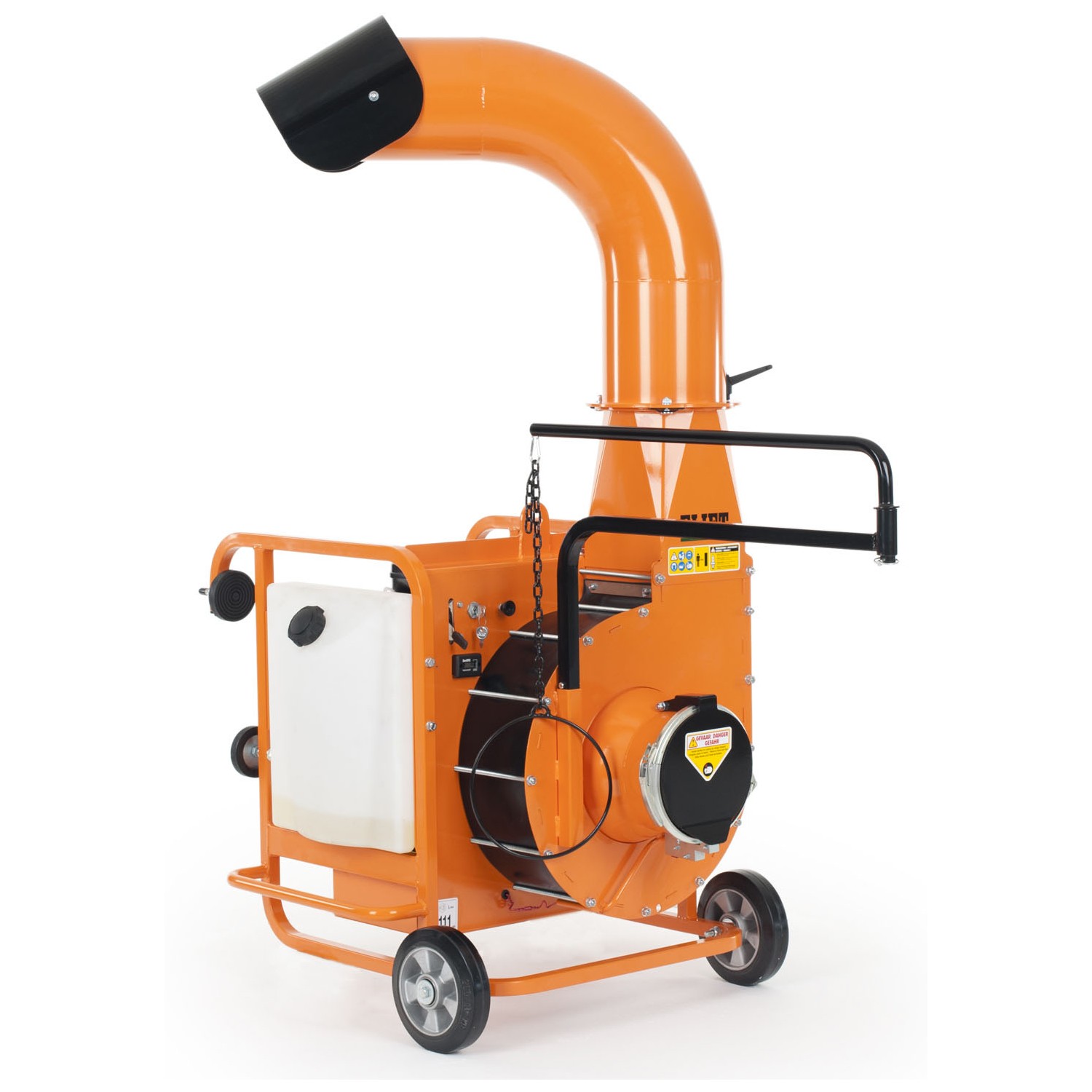 Motore B&S Vanguard bicilindrico 23HP avviamento elettrico.Trasmissione alla turbina diretta, volume massimo aria m3/h. 108, velocita' aria km/h 260, chiocciola Ø mm. 450, turbina Ø mm. 380, bocca aspirazione Ø mm. 200 in acciaio con ruotino piroettante di supporto, stegole di manovra ergonomiche, telaio acciaio mm. 3, completo di tubo da m. 3,5, regolazione deflettore di scarico manuale, camino rotante a 360°, rumorosita' dB(LwA) 112.