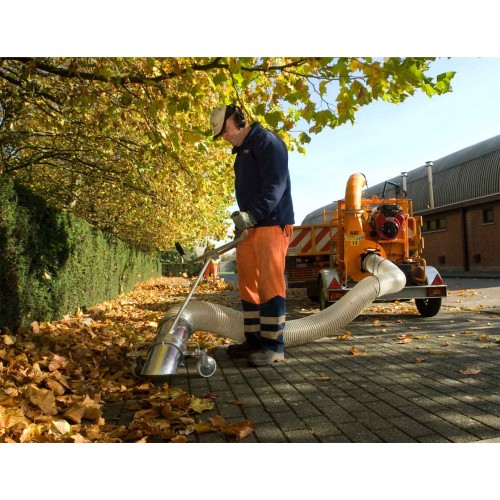 bocca aspirazione Ø mm. 200 in acciaio con ruotino piroettante di supporto,