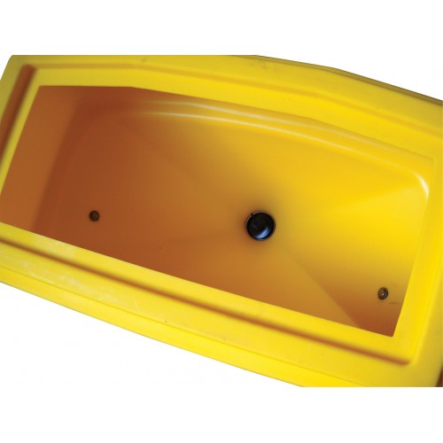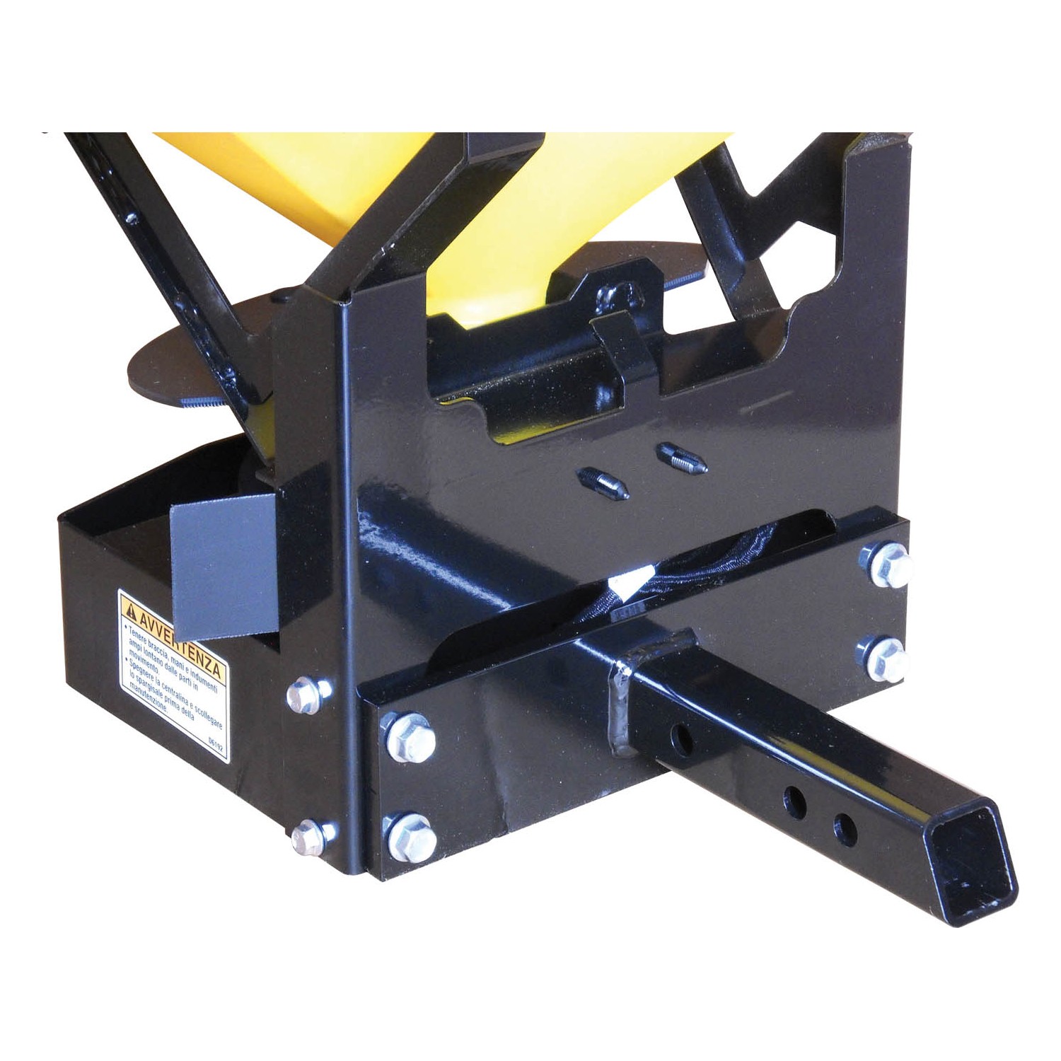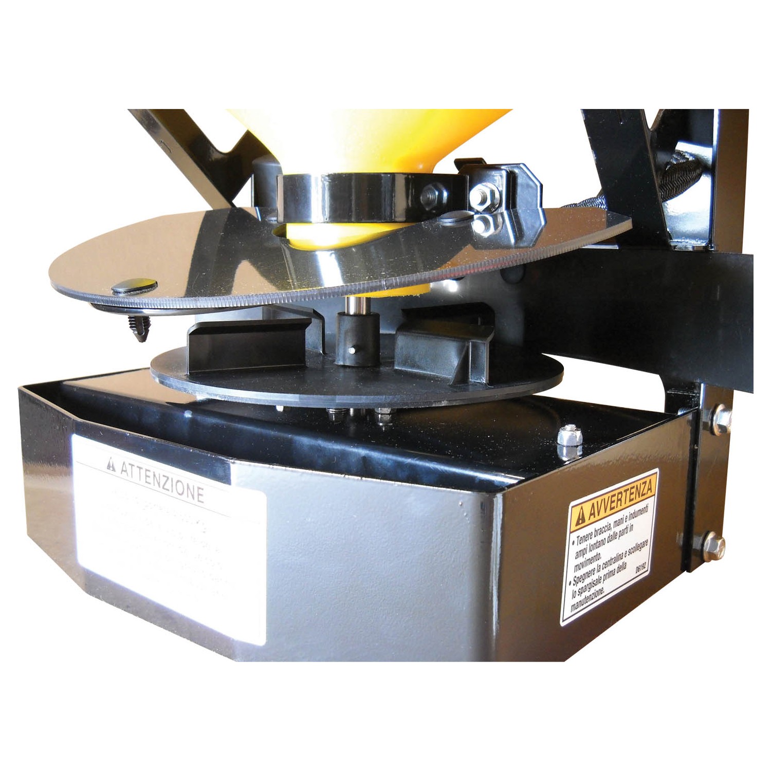 Per prodotti scioglighiaccio, sale, fioccato di calcio, sale industriale con vibratore VBR-080, pellet di calcio con limitatore di uscita GAC-020, girante Ø mm. 254 in nylon rinforzato, variatore remoto elettronico digitale distanza di distribuzione, telaio in acciaio modulare verniciato a polveri, tramoggia in polietilene giallo ad alta densita' anti UV, motore 12 volt, trasmissione con ingranaggi in bronzo, griglia superiore, coclea di alimentazione verticale Ø mm. 76, attacco al veicolo tramite tubolare quadro da mm. 51 (2").