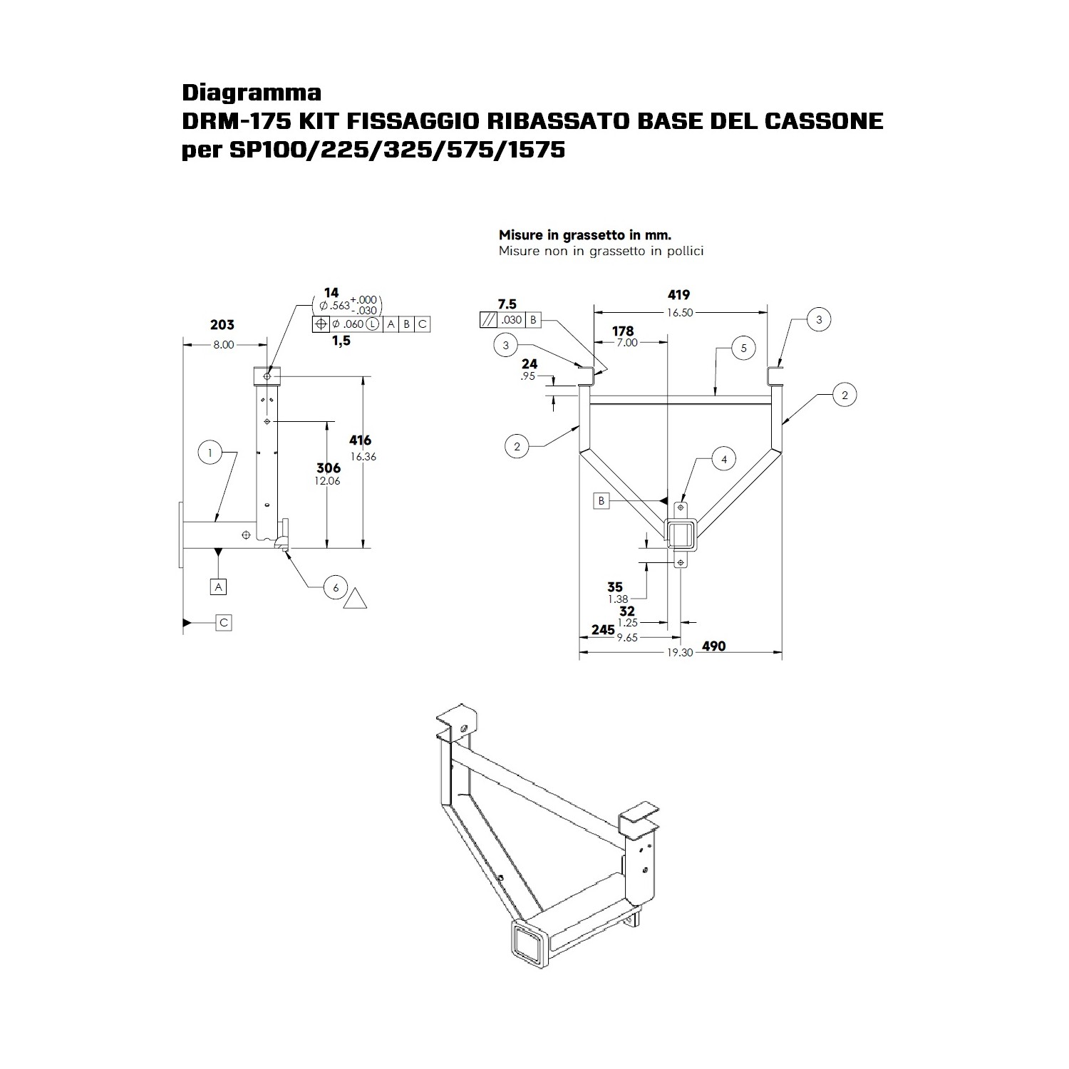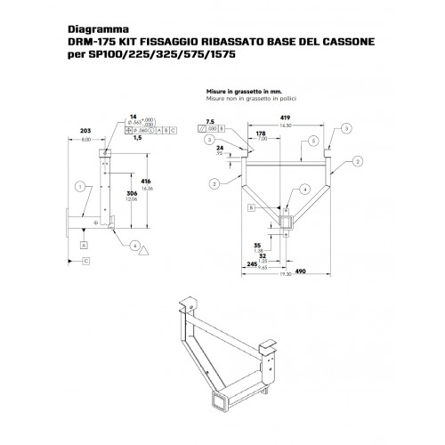 DRM-175 KIT FISSAGGIO RIBASSATO BASE DEL CASSONE per SP100/225/325/575/1575, peso Kg. 9