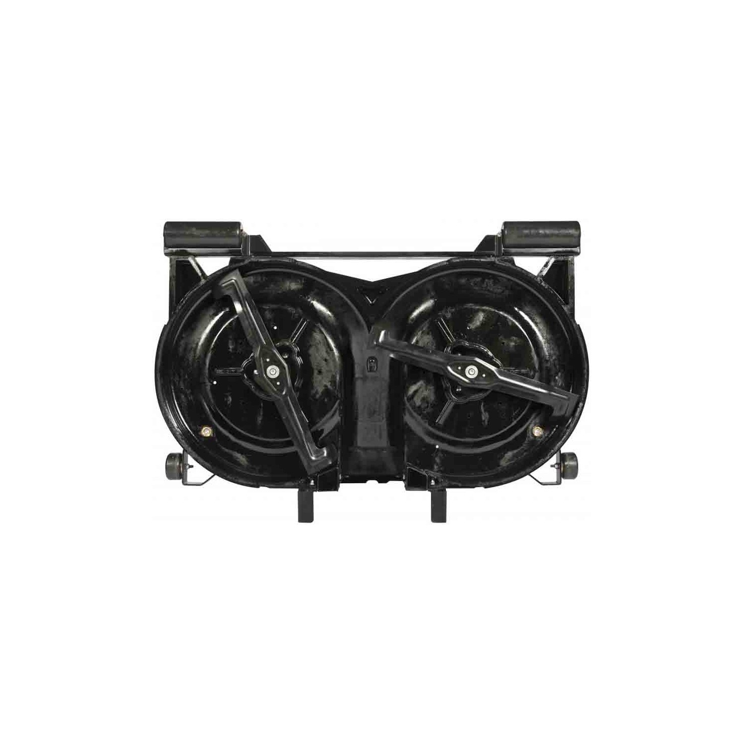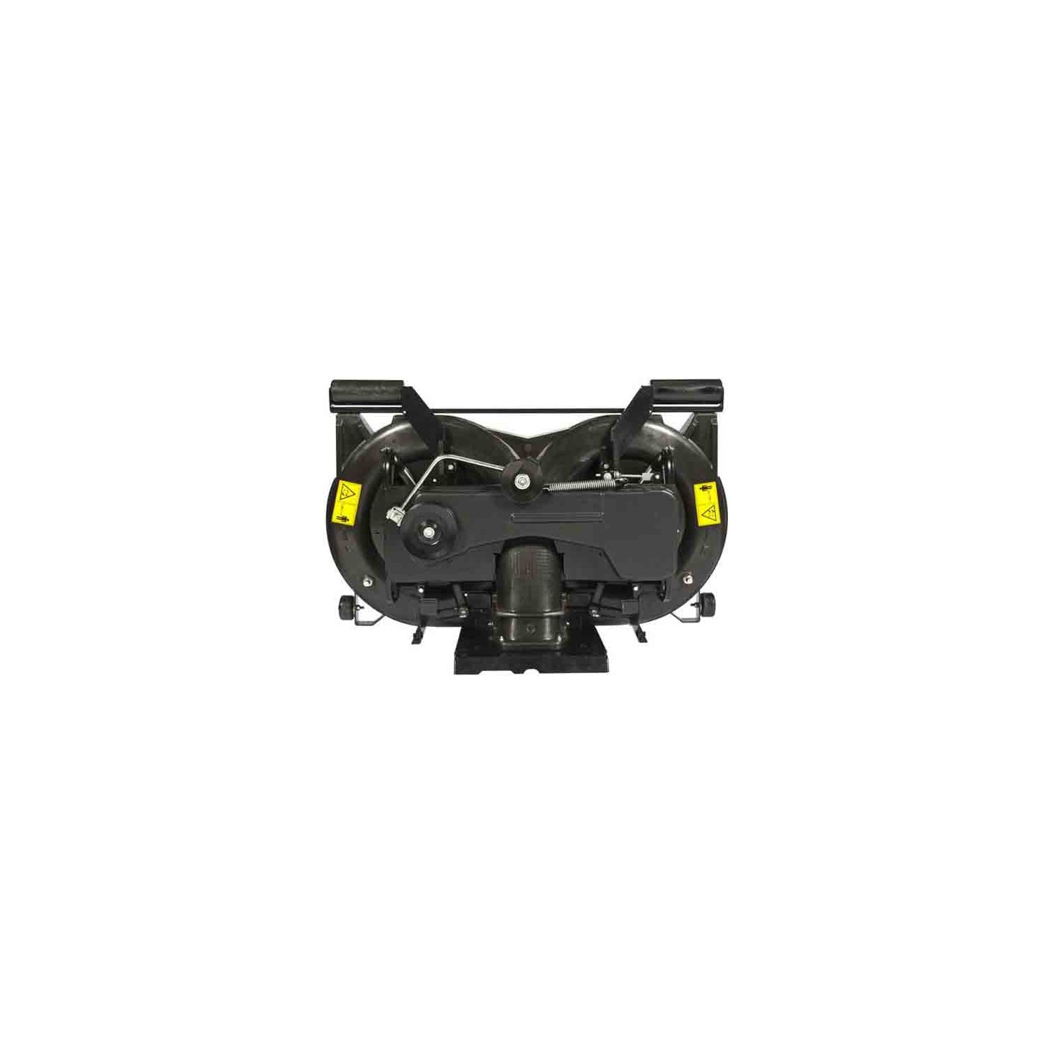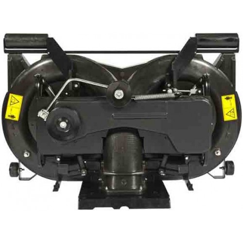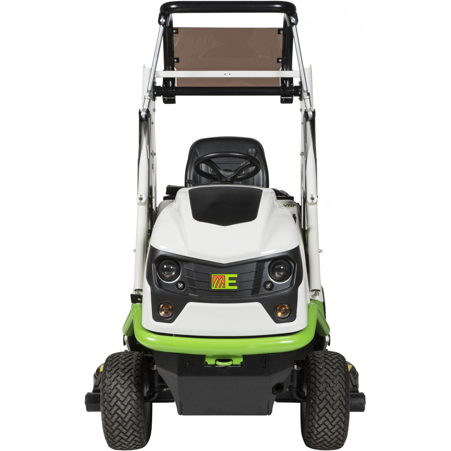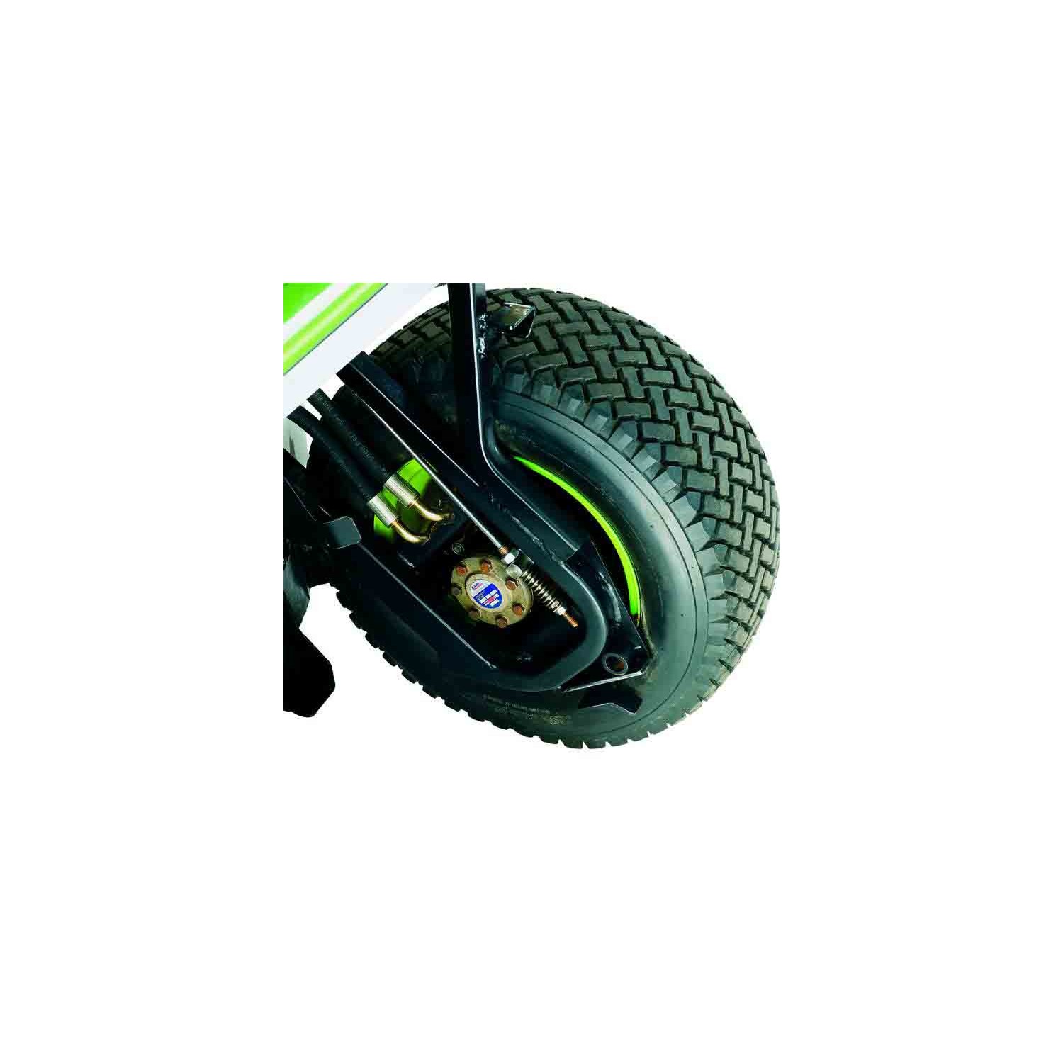 Motore BRIGGS & STRATTON Vanguard due cilindri cc. 627, Kw. 14, Kgm. 4,5, raffreddamento ad aria, trasmissione idraulica posteriore con bloccaggio dello slittamento, un motore per ciascuna ruota posteriore senza assale, velocita' Km/h da 0 a 12 avanti e retro, telaio tubolare in acciaio saldato, servosterzo idraulico, freni idrostatico e a tamburo per parcheggio sulle ruote posteriori, piatto di taglio sospeso in Mastershock a scarico centrale, 4 ruote antiscalp, due lame controrotanti con sovrapposizione del taglio di mm. 60, innesto lame elettromagnetico con freno per arresto rapido,trasmissione da motore a lame tramite cinghia dentata trapezoidale, sicurezza lame con viti a rottura calibrata, regolazione altezza di taglio manuale su 6 posizioni da mm. 44 a 102, cesto di raccolta posteriore da l. 600 in acciaio tubolare e tela anti UV sollevabile e scaricabile idraulicamente a m. 1,80, sistema di sicurezza attivo su sedile e cesto di raccolta, rumorosita' dB(LwA) 105 e 90 posto guida