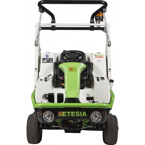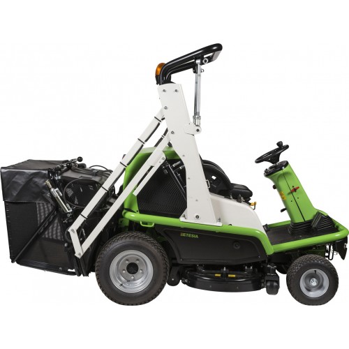 Motore LOMBARDINI FOCS Diesel tre cilindri cc. 1028, Kw. 17, Kgm. 6,8, raffreddamento a liquido, trasmissione idraulica posteriore con bloccaggio slittamento, un motore idraulico per ciascuna ruota posteriore senza assale, velocita' Km/h da 0 a 16 avanti e retro, telaio tubolare in acciaio saldato, servosterzo idraulico, freni idrostatico e a disco per parcheggio, piatto di taglio sospeso a scarico centrale con paratie esterne e smontabili per rapida manutenzione alle lame, sollevamento e svuotamento cesto idraulico, doppia presa di forza idraulica anteriore, sistema di sicurezza attivo su sedile, paratie laterali piatto e cesto di raccolta, sollevatore idraulico anteriore, trasmissione da motore a lame tramite cinghia a V e doppia coppia conica in bagno d'olio, protezione lame con viti a rottura calibrata, regolazione altezza di taglio elettrica da mm. 44 a 140, cesto di raccolta posteriore da l. 600 con telaio in acciaio tubolare e tela anti UV scaricabile idraulicamente a m. 1,80